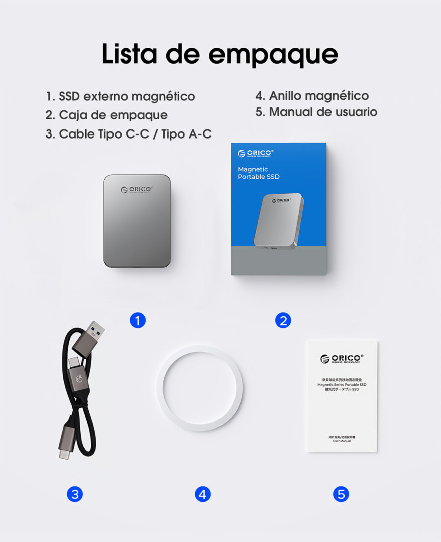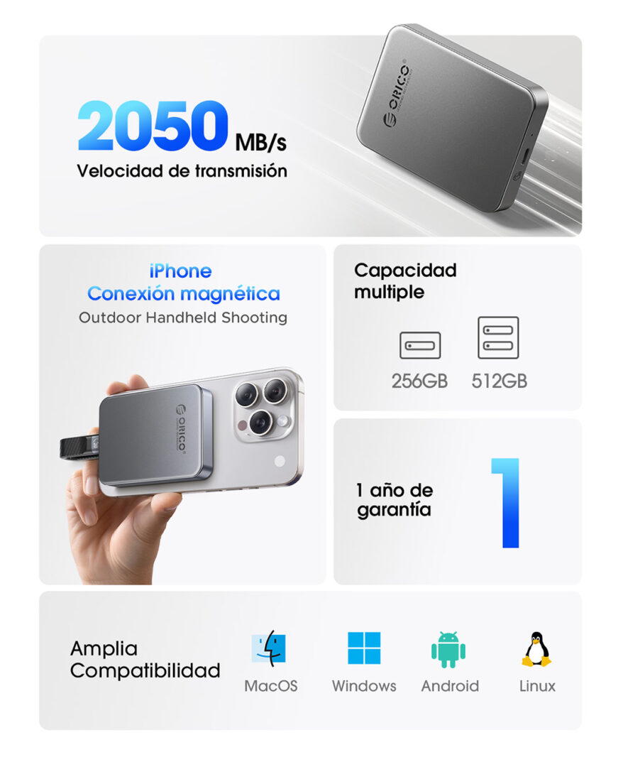 SSD Externo 256-512 GB Magnetico Para Phone ORICO-K5PLUS-GY-BP